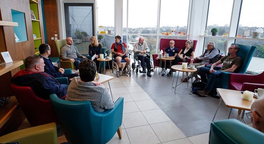 He then went over to our Wellbeing Centre, where our Patient & Family Support Manager Claire Bradley gave him a tour of our centre's services. Following that he took part in a Q&A session with Beatson patients in the centre lounge where they enjoyed hearing John's life experiences along with him taking photos and giving autographs.