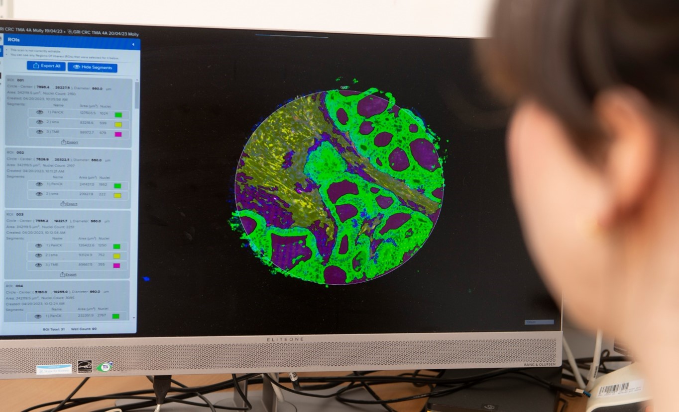 In this Beatson Cancer Charity funded project, researchers will use the new AI technology to analyse a cohort of patient tissue samples from the INCISE project. They will specifically investigate biomarkers which, up until now, have been too difficult to analyse. Their analysis will be aligned with clinical data to identify novel biomarkers for the early detection of colorectal cancer. This work will help to accelerate the pace of biomarker discovery to take forward into clinical work which will directly benefit Beatson patients in the future. The team will also investigate immune markers in an existing cohort of patient tissue samples. This work will develop a better understanding of how polyps in the colon develop into cancer and how we can prevent it from happening.