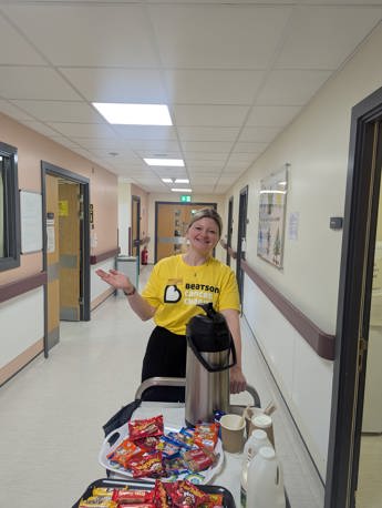 PICTURED: Claudia volunteers with Beatson Cancer Charity's tea trolley service.